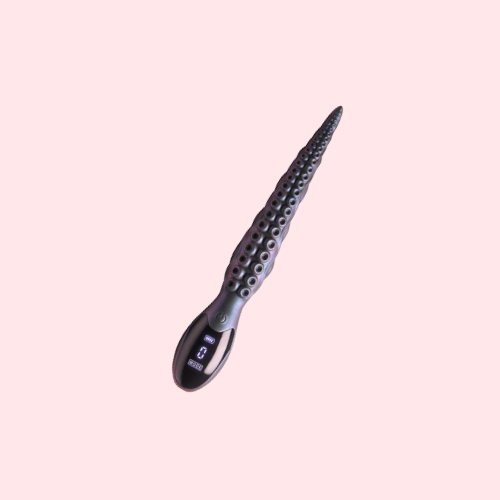 - Fantasy Vibrator: This tapered, textured, tentacle is covered with octopedal suckers and shines with a metallic, iridescent teal color. Grab hold of it via the round base and slide it inside!